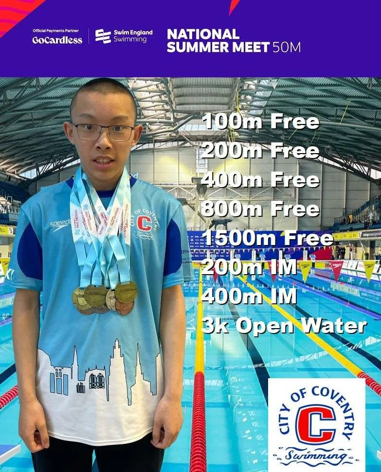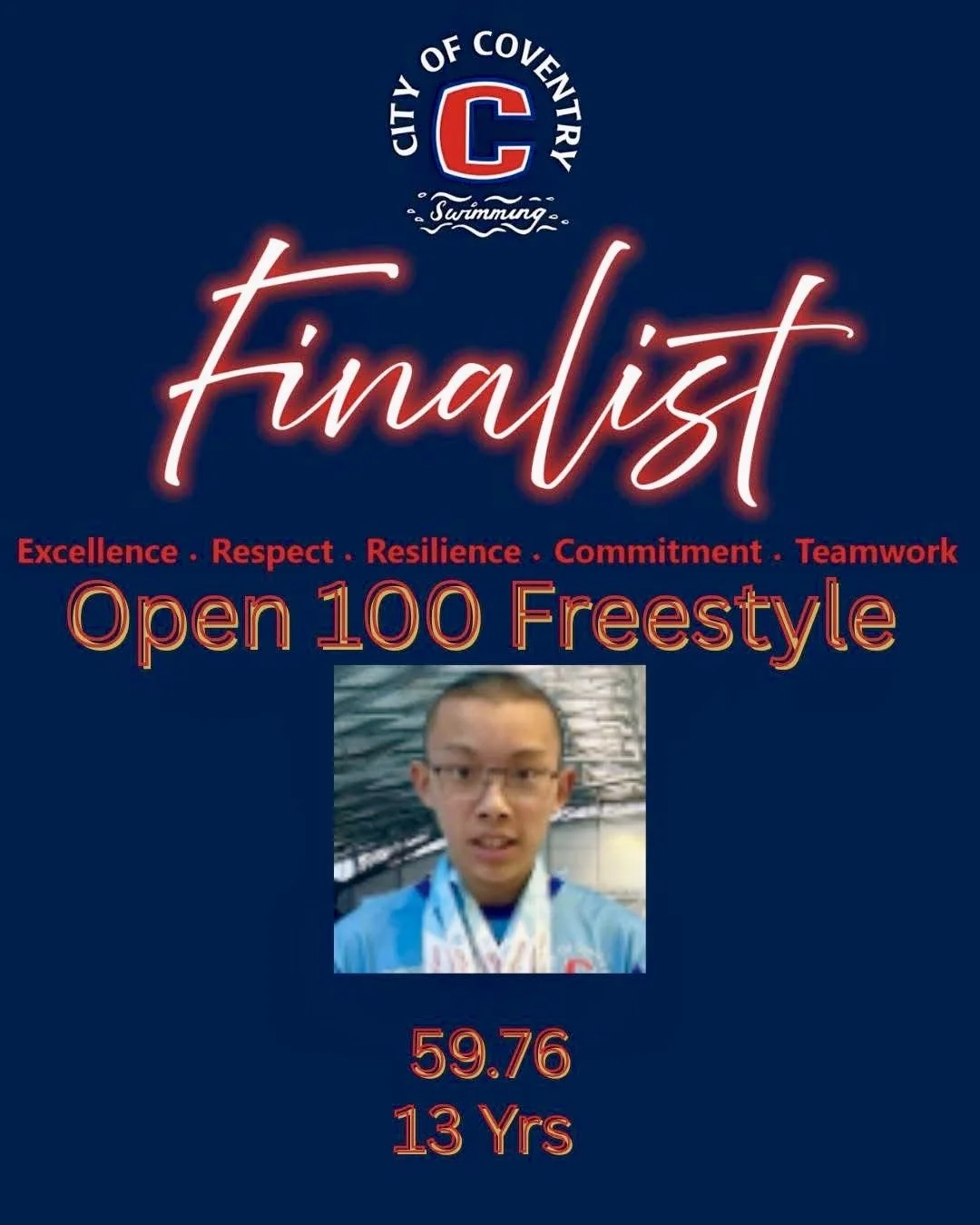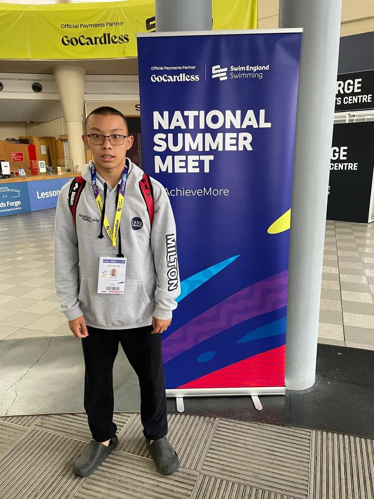 This summer, Milton ended his season on a real high. At just 13 years old, he qualified for eight events at the GoCardless National Summer Championships 2025 at Sheffield’s Ponds Forge – a huge achievement at such a competitive level. Not only that, but he went on to reach the finals in the 100m freestyle, showing the hard work and commitment he’s put into training.